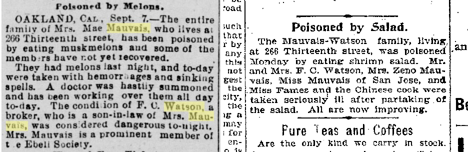 […] actually told The Nina Mauvais Watson Story before (here) – but some new info has come to light! To recap, though: Frank Watson was the son of B. A. […]