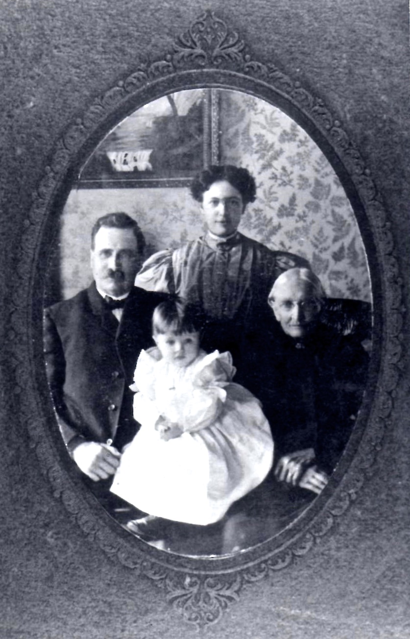 With Louisa are her son Frederic Delos Clark, his daughter Cora Viletta (Clark) Wheeler, and the baby, Cora’s daughter Ruth (Wheeler) Baldwin. Ruth was born in October 1903, so the photo probably can be safely dated 1904. Louisa died at her home in Fox Lake a couple years later (January 23, 1906), having been widowed in 1902.