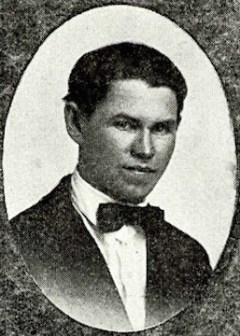 So – on with the show. I once was presented with a puzzle. I ran across the 1922 class photo from Greenfield High School, just west of Winterset. It was an arrangement of senior portraits and included an alphabetical list of student names at the bottom. The index included Melvin L. Wright, who I knew was the son of William W. Wright, grandson of Jackson and Nancy. But which boy was he? – the order of the portraits did not correspond with the index. I have no photos of William, but it turned out I didn’t need any to make this ID.